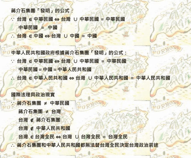 說得更仔細一點,就是:<台灣關係法>是根據聯合國大會第二七五八號決議文裁定蔣介石集團不得非法冒用中華民國的國際法效力而必須否定「中華民國(在台灣)」的合法性(請參考本部落格舊文<台灣關係法>),所以,除非台灣民選政府願意坦承「中華民國」是因循兩蔣欺世盜名惡念而苟且延續的非法名銜,同時,公開向全世界宣布台灣與澎湖列島上的全體人民已經透過直選總統民主程序建立一個合法接替非法「中華民國」的「台灣治理當局」,否則,如何苛求美國政府承認這個世界存在一個合法的新興「台灣治理當局」?